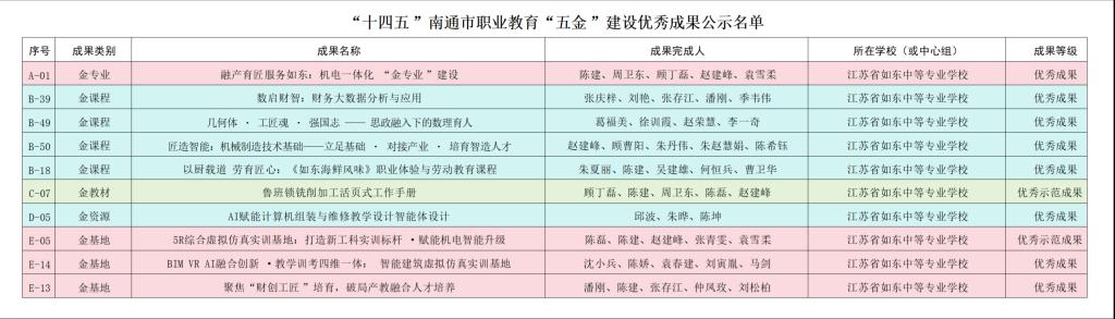 喜报!我校10项“五金”建设成果获评南通市优秀成果!