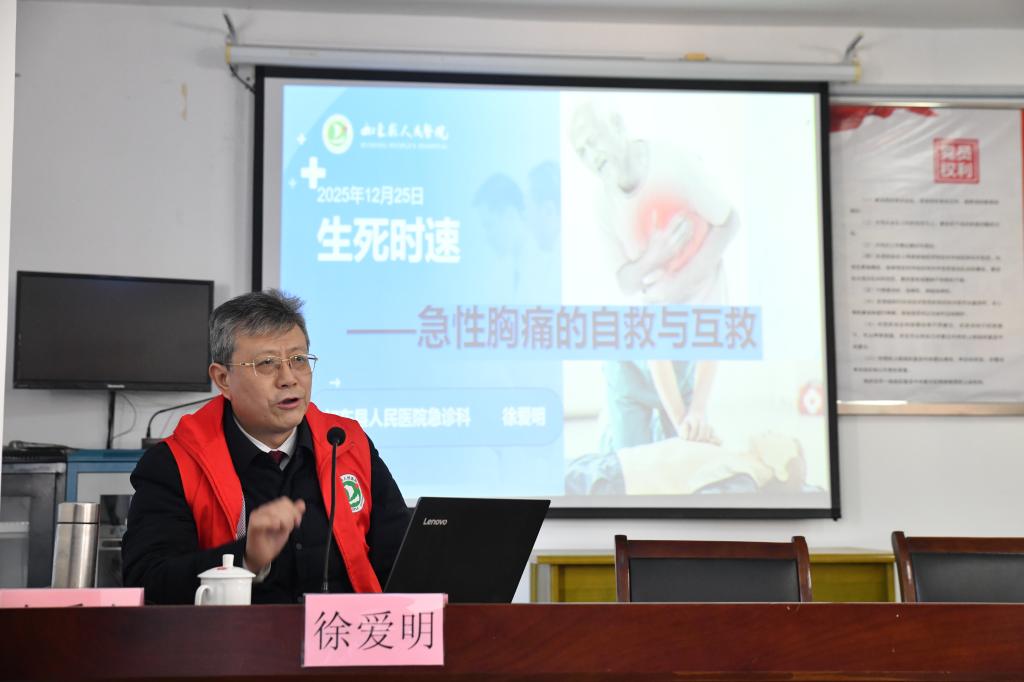 12月25日,如东县社区培训学院特邀如东县人民医院急诊科主任、主任医师徐爱明,为双甸镇70余名老干部开展急性胸痛自救互救专题讲座,并同步进行心肺复苏实操培训。