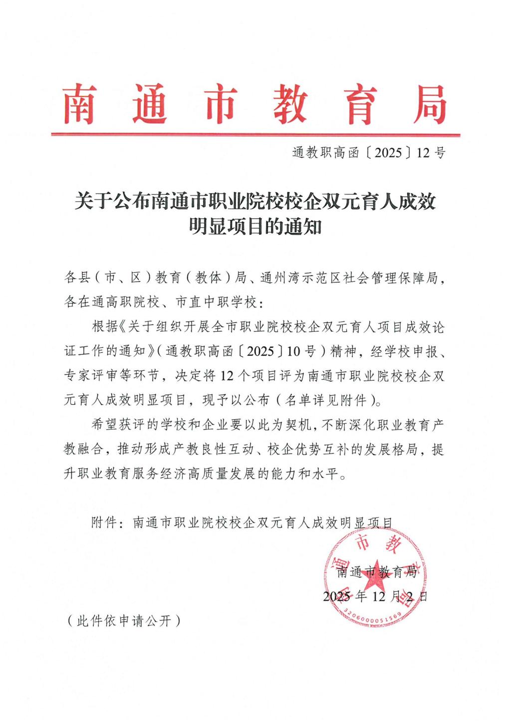 近日,我校机电一体化专业与中天科技集团合作申报的育人项目,经南通市教育局组织评审,成功获评“南通市职业院校校企双元育人成效明显项目”。
