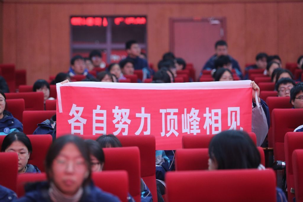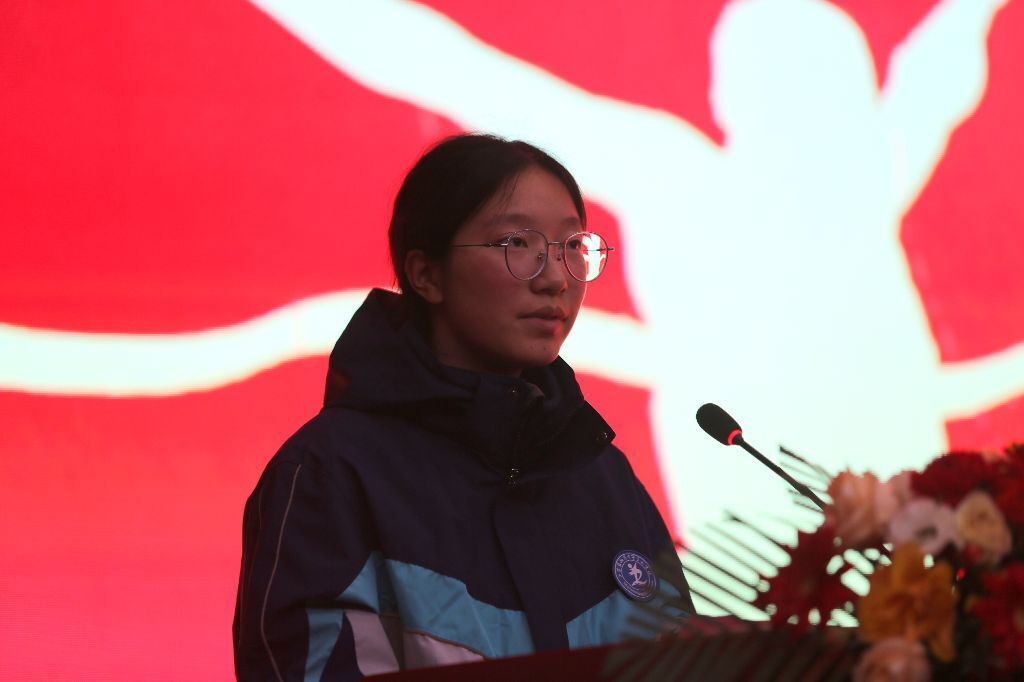 接着,学生代表季阳同学上台发言。她鼓励同学们珍惜这最后的百日时光,以坚定的信念和不懈的努力,去追逐自己的梦想。