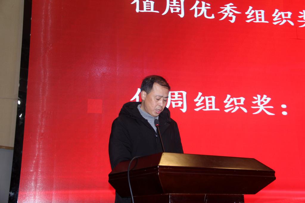 花金明副校长宣读本学期劳动教育先进集体及个人的表彰决定。