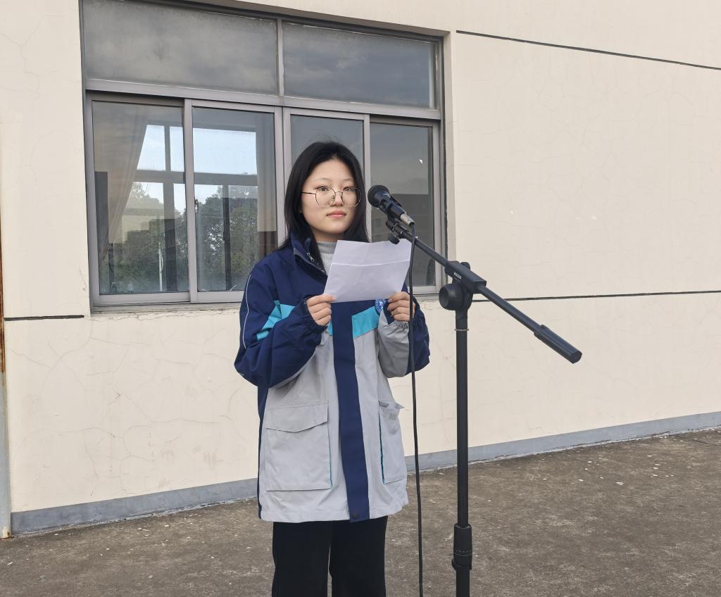 随后,2024对口7班学生代表陈佳琪进行国旗下发言。她以《新学期,新现象》为题,分享了对职业教育的深刻感悟。陈佳琪同学表示,新学期的“新现象”不仅是校园里焕然一新的环境,更是职教学子从内而外的精神风貌。她提到,如今“以赛促学”已成为校园新风尚,“升学就业双路径”凝聚共识,产教融合让课堂“活”了起来。她号召全体同学抓住职教改革机遇,在技能竞赛中挑战自我,在职教高考中圆梦本科,用双手创造属于新时代的精彩。