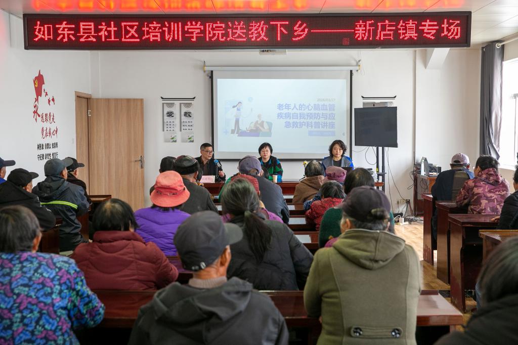 3月27日,如东县社区培训学院公益送教活动走进新店镇,专场开展老年人心脑血管疾病自我预防与应急救护科普讲座,为社区老年群众普及健康知识,守护银发健康。