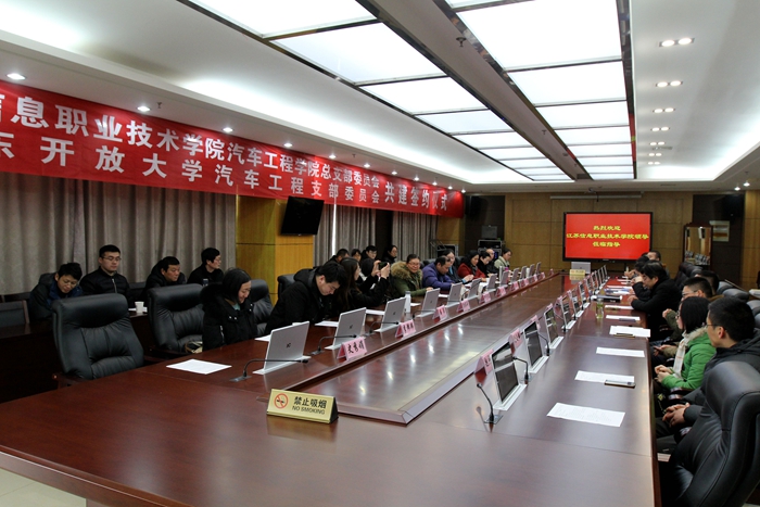首先,余飞校长向江苏信息职业技术学院的各位党员介绍了我校基本情况。随后,现场播放了两校宣传片,通过观看视频,大家对双方学校有了全面了解。接着,两校党总支(党支部)书记介绍了各自汽车工程学院(系)的概况,现场签订了共建协议。最后,江苏信息职业技术学院党委委员张瑜副院长介绍了汽车工程学院的主要专业特色,希望通过组织联建、活动联办、人才联育、资源联用等方式,增强双方的联系和交流,逐步实现资源共享、双向共赢。