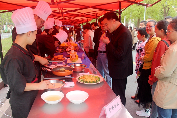 来宾在现代服务管理系中餐烹饪展区品尝菜肴