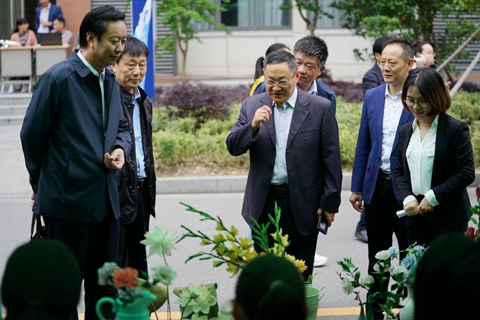 唐国均书记、李建国局长、于建华副局长、符海燕主任等观摩纸艺花制作展示