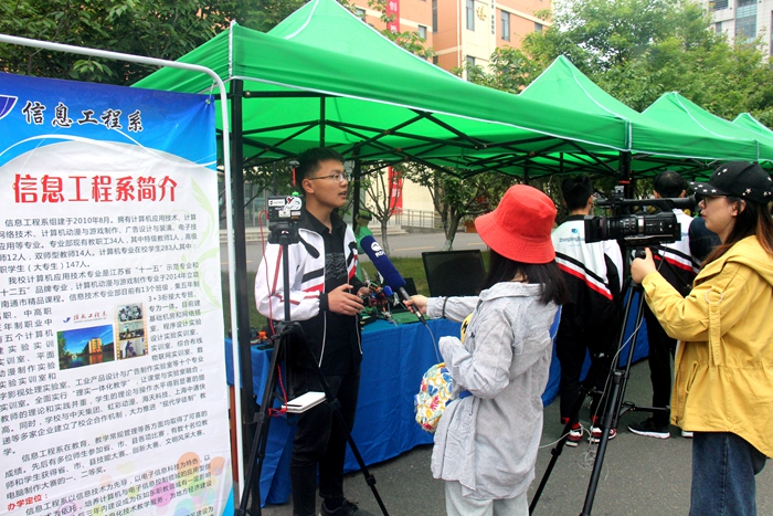 家长代表在展区接受记者采访