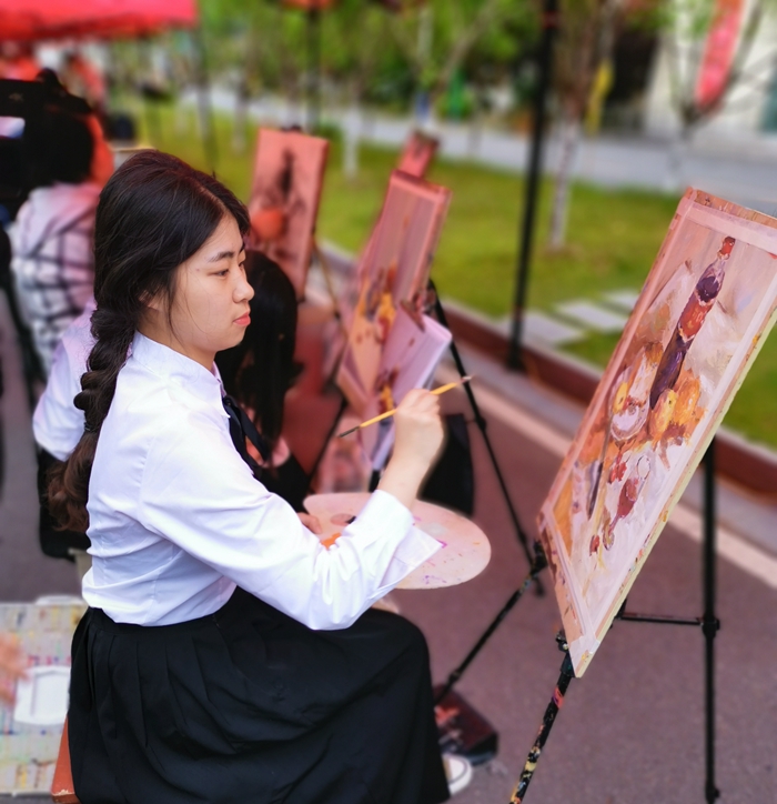 综合高中部学生展示水粉画