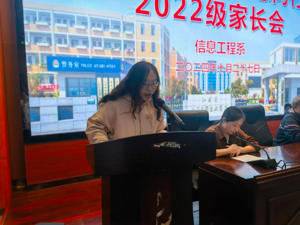 首先,信息工程系朱晔主任致欢迎词,介绍活动意义,分享学生入学以来的学习与生活情况,并与与会的家长们探讨家校合作新路径。