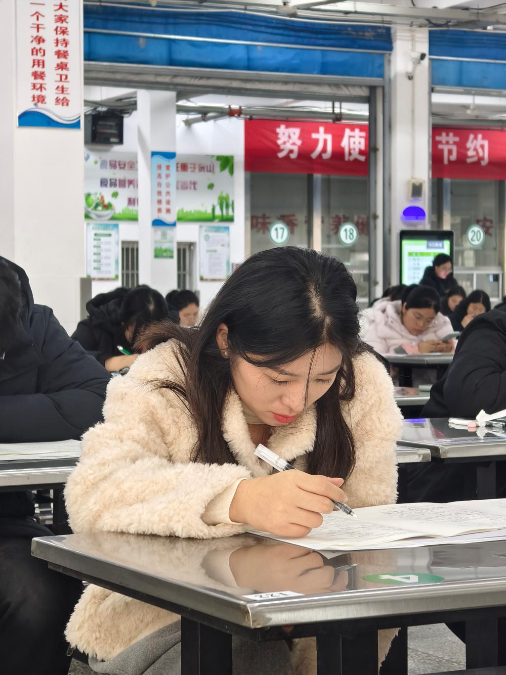 考场上,学子们凝神思索、奋笔疾书,尽显青春拼搏姿态;新教师们褪去师者身份,以考生之名认真审题、规范作答,笔尖起落间尽显严谨治学态度。