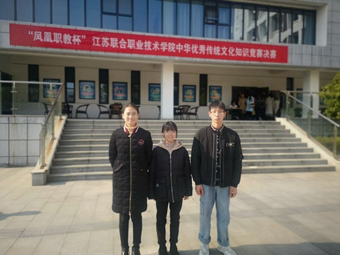 12月10日,由江苏联合职业技术学院语文教学协作组主办,苏州旅游与财经高等职业技术学校承办的“凤凰职教杯”江苏联合职业技术学院中华优秀传统文化知识竞赛决赛如约而至,来自全省的50所分院和办学点共150名学生参加了决赛。我系10月初经过层层选拔、考试,最终由我系张杨亮和财经商贸系周明明、陈祎涵三人组成代表队参加了本次比赛。
