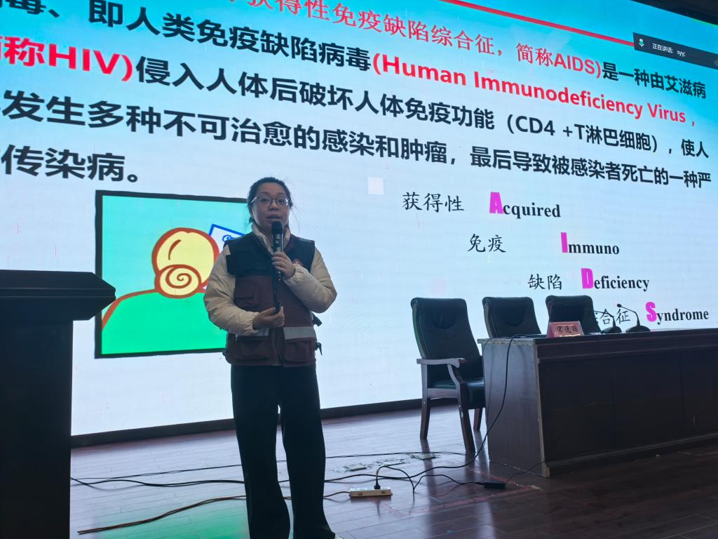 青少年作为防艾工作的重点群体,其健康成长关乎校园文明建设与社会和谐发展。活动伊始,学工处副主任马莉莉强调“科学防艾知识的普及,是守护青少年身心健康的关键防线,更是构建安全文明校园的重要保障。”随后,深耕公共卫生防控一线的宋逸瑶科长展开权威分享,她结合丰富实践经验,系统讲解了艾滋病的传播途径、临床症状及防治要点。