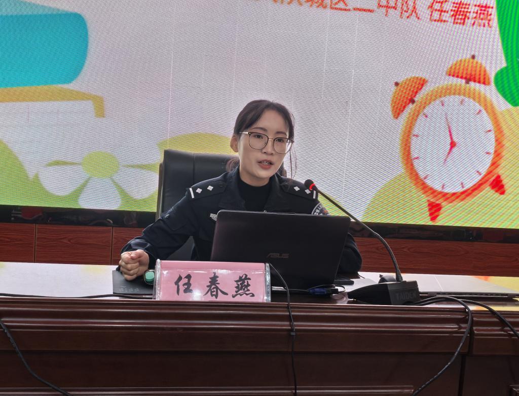 任春燕警官深耕交管一线多年,凭借扎实的业务功底和丰富的实战经验,多次荣获县局、大队嘉奖,是交管系统公认的宣传骨干。授课中,任警官结合校园周边及学生日常出行的常见场景,用通俗易懂的语言、生动鲜活的案例,深入剖析了闯红灯、横穿马路、骑行不规范等交通违法行为的危害。从步行、骑行到乘车的各类安全注意事项,从交通标志的识别到突发情况的应急处置,任警官一一细致讲解,为师生们送上了全面系统的交通安全知识“大餐”。同时,她还通过互动提问的方式,调动现场气氛,引导同学们主动思考,让安全理念在问答间深入人心。