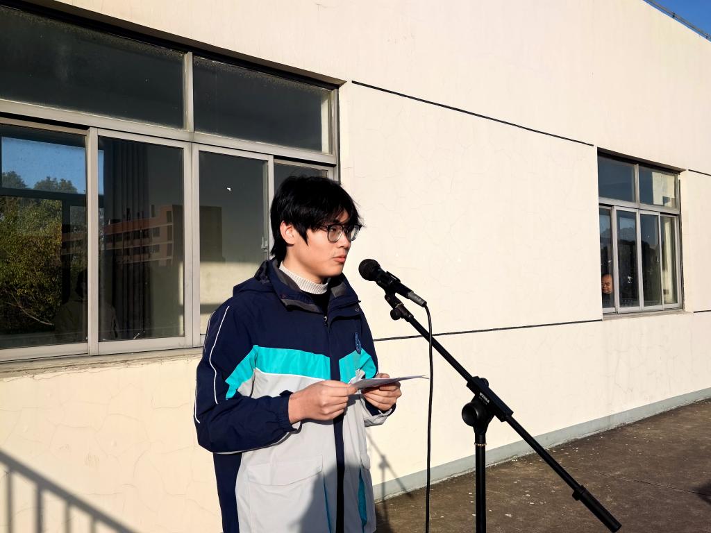 随后,2022 计算机应用2班的姜瞿浩同学作为获奖学生代表发言。他深情回顾了在如东中专的求学时光,衷心感谢学校的悉心栽培与老师们的谆谆教诲。他表示,这份荣誉既是鼓励也是责任,未来将以此为新的起点,始终保持踏实勤勉的学习态度,不断提升专业技能,勇于探索创新,努力在计算机领域勇攀高峰,用实际行动回报学校与社会的期望,为学弟学妹们树立良好的榜样。