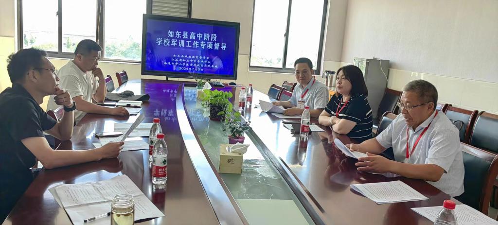 军训第一天,南通市教育局人武部部长、体卫艺处副处长林栋、如东县教育局副局长黄卫华、如东县政府教育督导室专职副主任陈炳慧、教育局督导科科长顾瑞兵、如东中专责任督学吴亚云等一同到军训基地实地督导检查。督导科顾瑞兵科长重点对“南通市如东县高中阶段学校军训工作督导检查细则”进行了解读,同时对如东中专责任督学提出具体的工作要求。县政府教育督导办公室专职副主任陈炳慧就认识层面以及督导层面提出了明确的要求。
