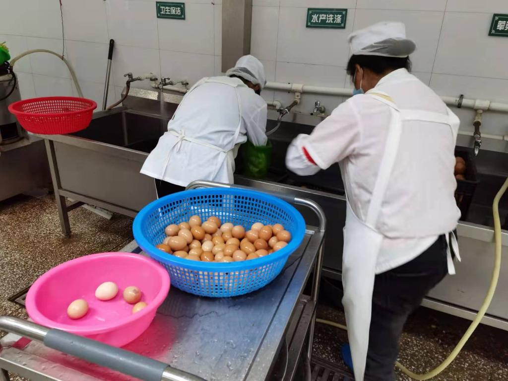 7:00不到,食堂采购员何泽林带着采购组回到食堂。老何说:“我们也是每天早晨5:30到中心市场,按照采购清单,多个摊位比质比价,不让食堂多花钱,不买不符合要求的食材。”