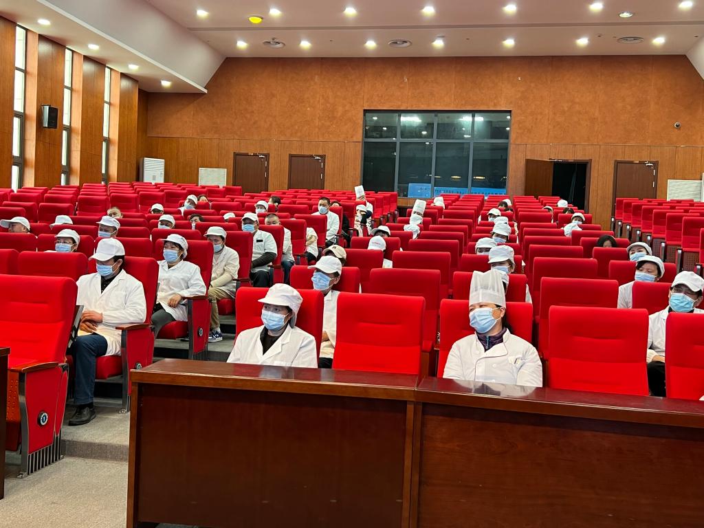 曹卫华首先传达了市县联合召开的食品安全工作会议精神,简要介绍了“互联网+明厨亮灶”创建工程,及我校复用餐具抽检情况中出现的问题,并就此问题的产生原因、解决方法以及食品制作过程中容易引发的食品安全问题等进行了详细的培训和辅导。
