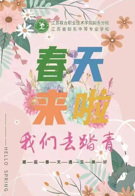 清明节又叫踏青节,在仲春与暮春之交,也就是冬至后的第108天。是中国的传统节日,也是最重要的祭祀节日之一,是祭祖和扫墓的日子,同时也是出游踏青的好时节。为让学生更好地了解、传承和弘扬民族传统文化,4月4日上午,江苏联合职业技术学院如东分院、江苏省如东中等专业学校举办以“春天来啦,我们去踏青!”为主题的清明主题活动,一起去感受春天,拥抱春天。