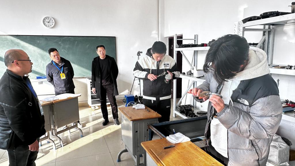 12月11日,县人社局就业促进科科长何海兵到校指导汽车维修工职业技能等级认定工作。何科长实地查看理论考场与实操工位,对认定流程、质量监控及台账管理提出优化建议。学校将完善各环节标准,持续提升评价科学性,为毕业生“双证”获取和高质量就业提供支撑。