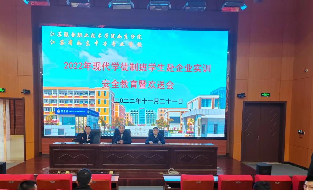 为进一步加强校企合作、深化产教融合,全面推进现代学徒制工作,11月21日上午,我校78名学生齐聚学校敬业堂,参加2022年现代学徒制班赴企业实训安全教育暨欢送会。招生就业处主任沈理玮、副主任陈小兵,机电工程系周卫东主任,保卫处副主任邓祥,李建兵老师参加了会议。会议由陈小兵副主任主持。