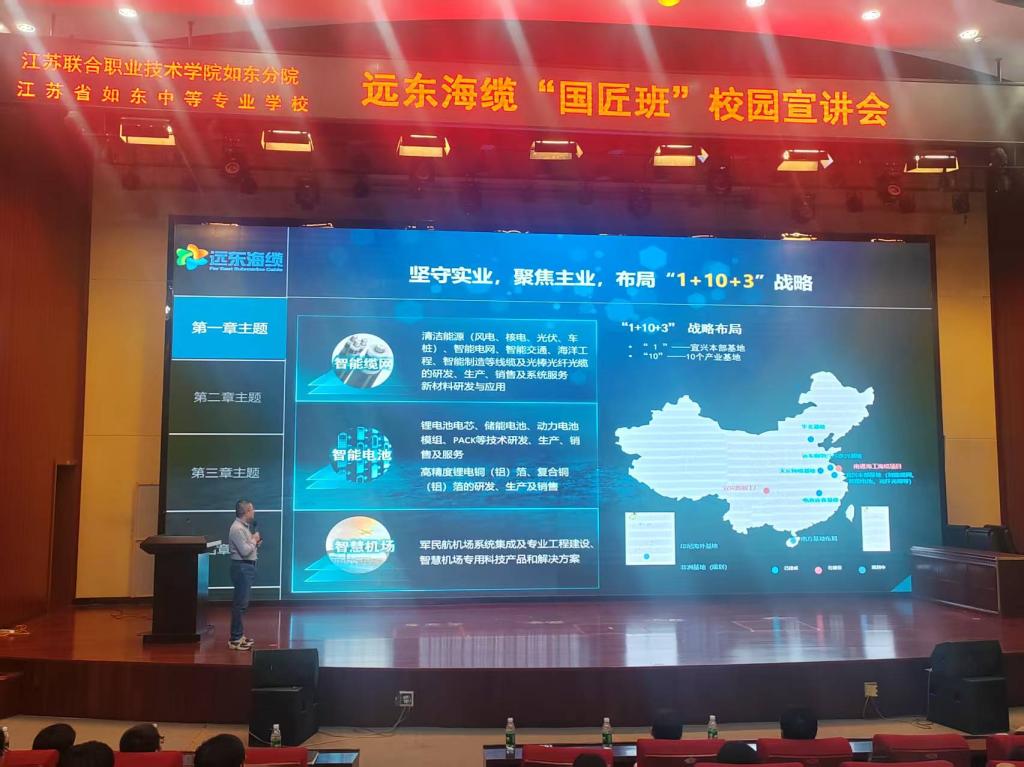 10月13日下午,远东海缆“国匠班”校园专场招聘宣讲会在江苏联合职业技术学院如东分院举行,为2026届高职毕业生与优质企业搭建起面对面交流平台。