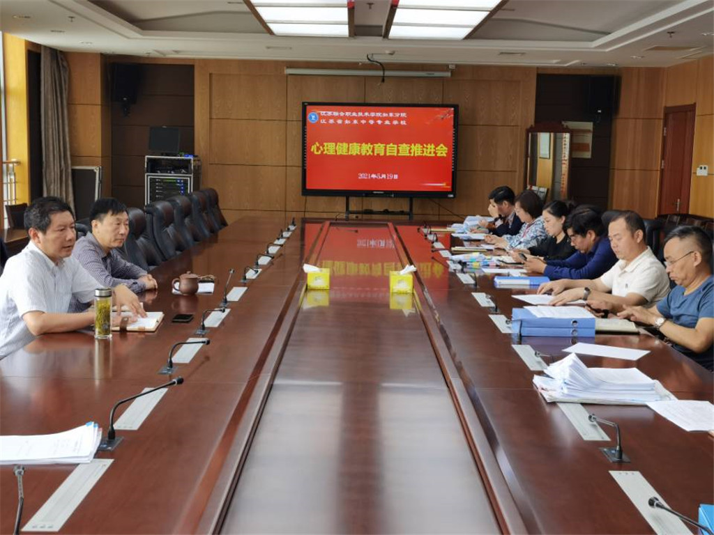 5月19日上午,江苏联合职业技术学院如东分院、江苏省如东中等专业学校在求实楼仁和厅召开心理健康教育自查推进会,校长余飞、副校长孙智明、党政办主任肖海兵、学工处主任季勇、各系部德育副主任,及学工处徐典正、葛璐琦两位老师出席了会议。会议由孙智明副校长主持。