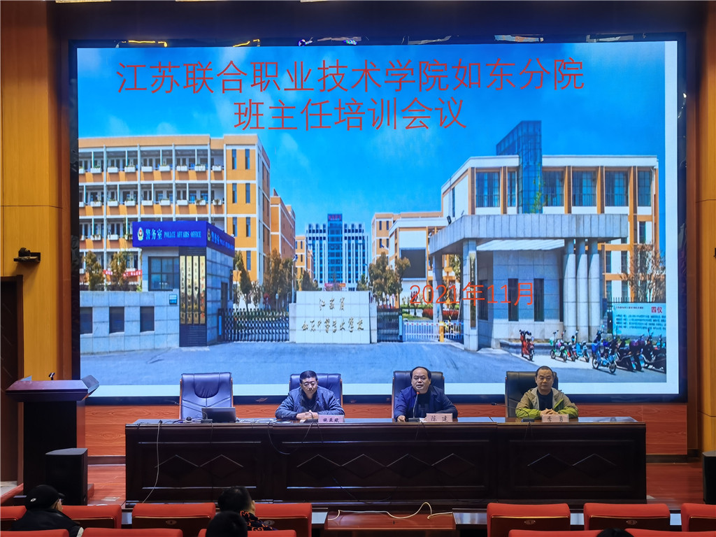 11月18日上午8:00,为进一步提升班主任工作能力,江苏联合职业技术学院如东分院、江苏省如东中等专业学校在敬业堂举办五年制高职班主任能力提升培训活动。学校副校长陈建,学工处主任季勇、副主任施亚斌以及各系部德育副主任、全体高职班主任参加活动。