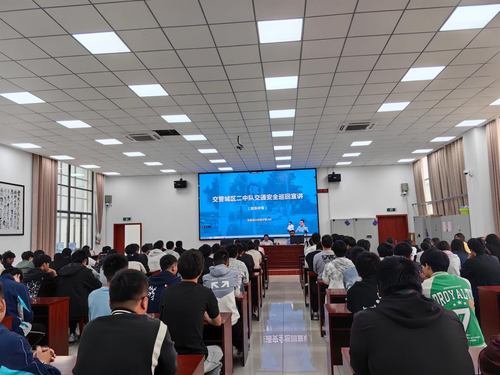 讲座中,陈警官以涉及学生类交通事故为例,结合自己丰富的从警经历,针对较多学生骑自行车、乘电动车上下学的情况,重点讲解了不系安全带、不规范佩戴安全头盔、闯红灯等交通违法行为的危害,从步行、骑车、乘车等方面引导同学们要自觉遵守交通安全法律法规,通过现实案例警示教育,切实增强我校师生的法治观念,不断提升师生交通安全防范意识和自救自护能力。