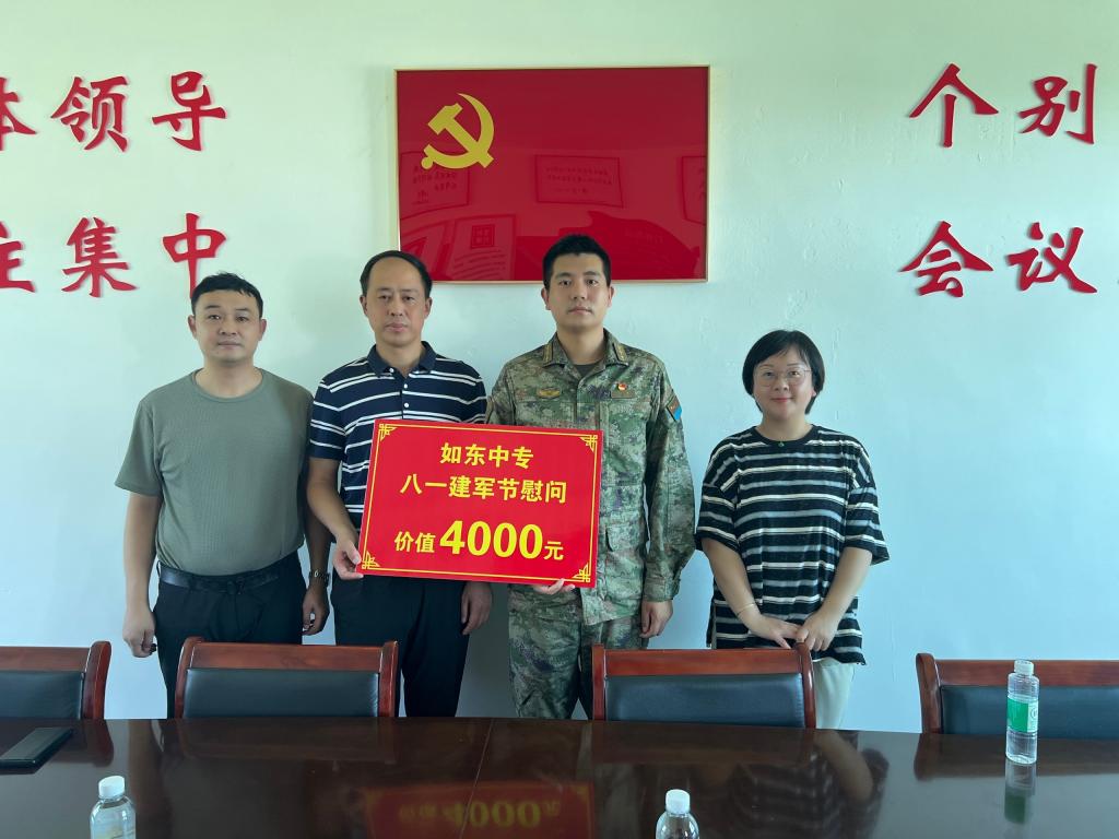 在2024年“八一”建军节来临之际,江苏联合职业技术学院如东分院、江苏省如东中等专业学校副校长花金明、学工处副主任葛璐琦、成教处副主任姚建祥一行三人赴军民共建单位——空军驻如某部队进行节日慰问。