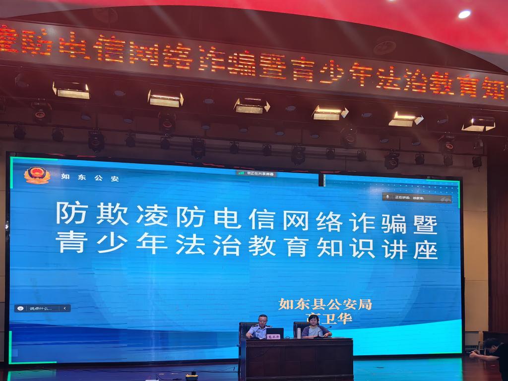 又是一年开学季,为进一步筑牢校园安全防线,持续做好防治学生欺凌工作及防电信网络诈骗工作,增强学生的自我保护意识,切实增强我校学生法治意识和法律素养,营造平安、文明、和谐的校园氛围。2024年9月20日上午,学校特邀请如东县公安局内保大队高卫华大队长来校举办了一场关于防欺凌防电信网络诈骗的法治教育知识讲座。讲座以“主会场+分会场”的形式进行,做到法治课堂人人参与,法律知识全员知晓。