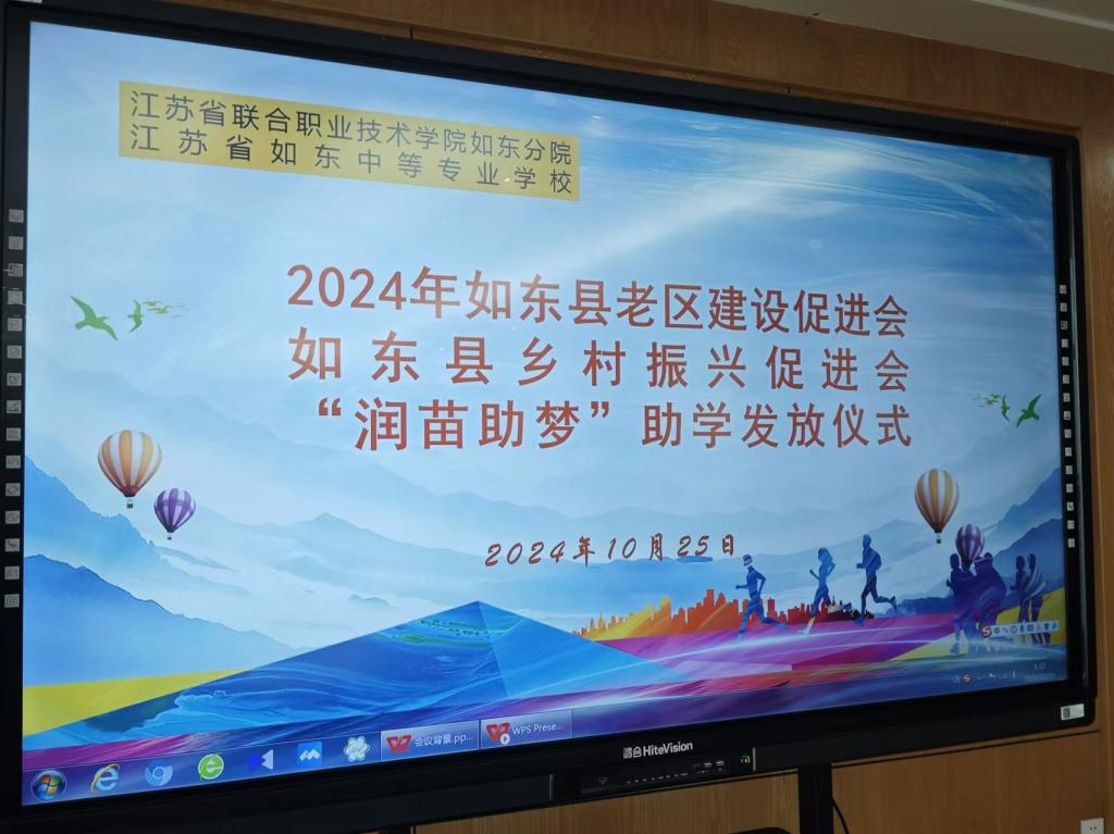 2024年10月25日上午,如东县老区开发促进会发起的“润苗筑梦”捐资助学发放仪式在我校隆重举行,会议由花金明副校长主持。江苏联合职业技术学院如东分院和江苏省如东中等专业学校共计20名学生受到资助。老区开发促进会副会长曹建荣、校党委书记丛杰、副校长花金明、学工处副主任葛璐琦和受资助学生参加了会议。