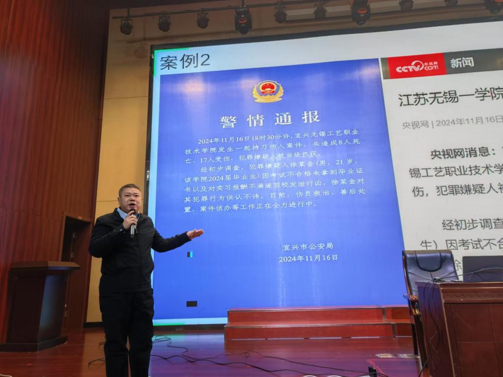 在讲座中,胡波主任以丰富的工作经验为基础,详细讲解了在校园内可能面临的各类突发事件的预防与应对措施。他结合当前社会热点,剖析了学校安全工作的关键环节,并通过具体案例展示了危机事件处置过程中的关键要点,特别强调了在突发事件中保持冷静和有序应对的重要性。此外,胡主任还分享了应急管理的先进做法和实践经验。