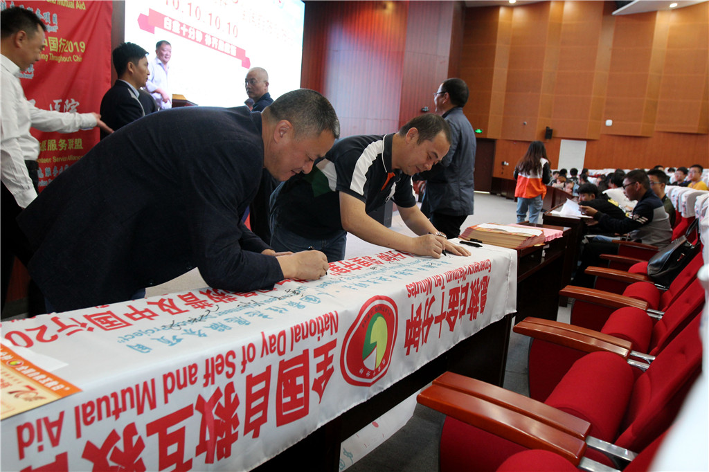 活动开始后,由与会领导宣读了“急救白金十分钟---全国自救互救日”活动倡议书。科协的施中华副主席、卫分健委的缪文龙副主任分别进行了即兴讲话。参加活动的相关领导在“急救白金十分钟--全国自救互救活动日”条幅上签名,并合影留念。