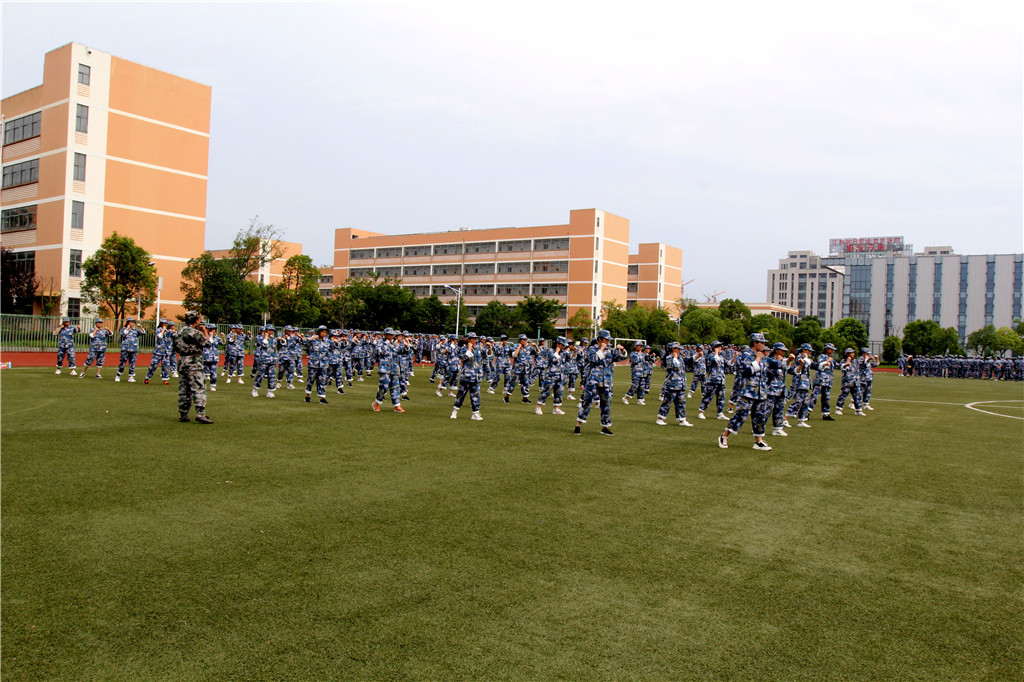 因受疫情的影响,今年的军训活动在学校校园举行。