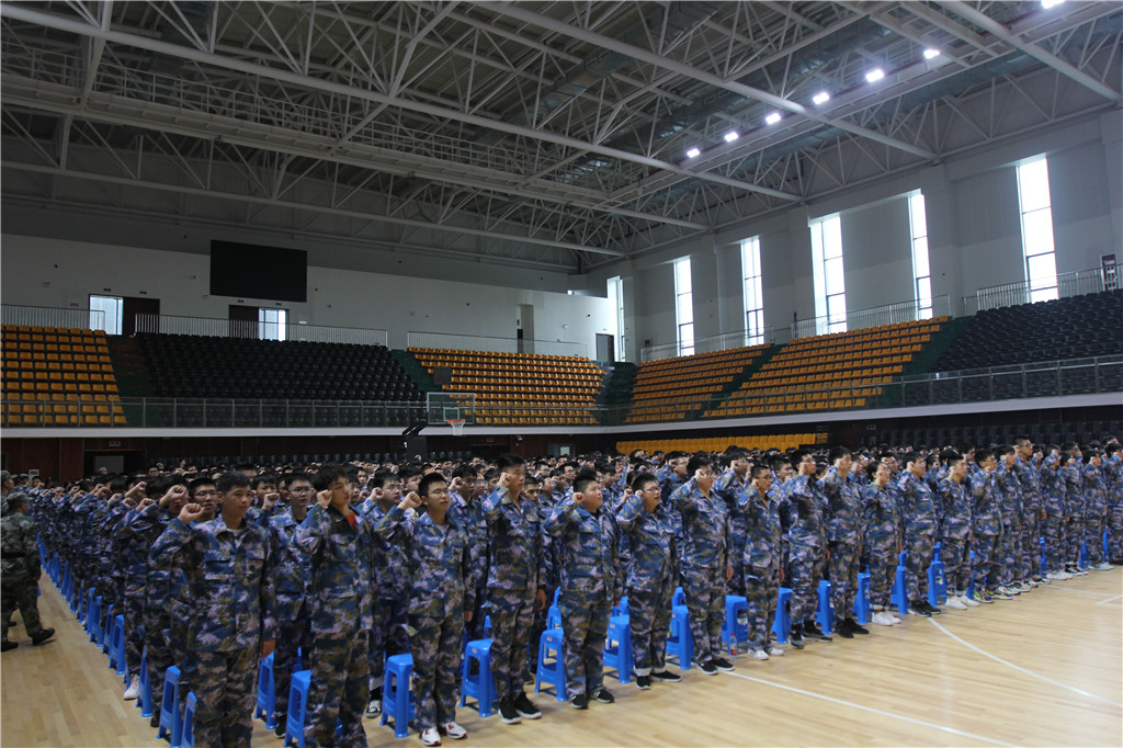 军训学员在开营典礼上宣誓