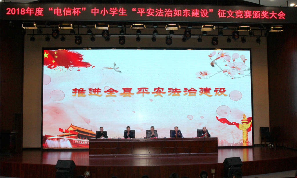 2019年3月13日上午,江苏联合职业技术学院如东分院、江苏省如东中等专业学校 2018年度“电信杯”中小学生“平安法治如东建设”征文颁奖活动在校是楼敬德厅举行,如东县综治办副主任邱宗鹏、如东县教育局法治科科长施银华、如东中专副校长孙智明、学工处主任季勇、学工处副主任王小兵等出席活动,并为获奖学生颁发证书和奖品。邱宗鹏副主任向孙智明副校长颁发了“优秀组织奖”证书。