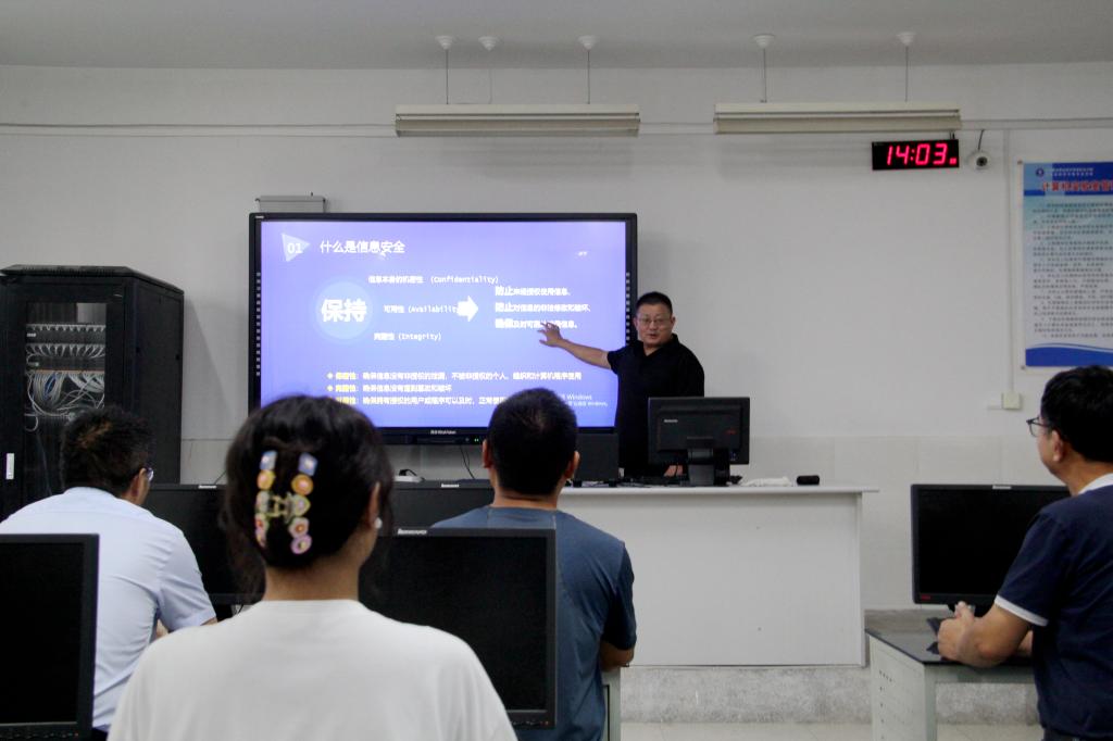 信息技术处张西明副主任对常见的网络攻击特点、危害及应对措施进行针对性培训