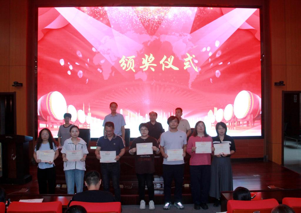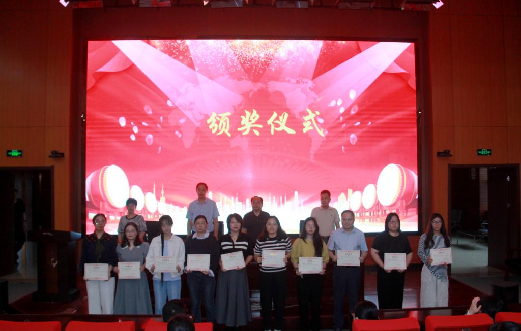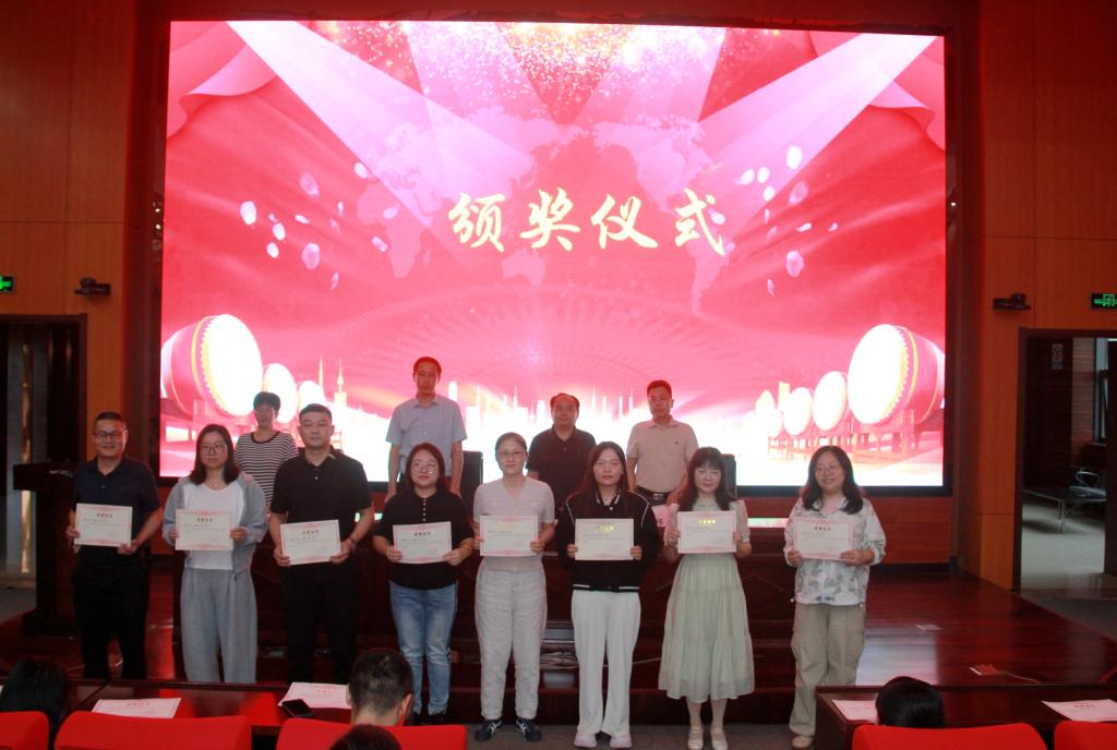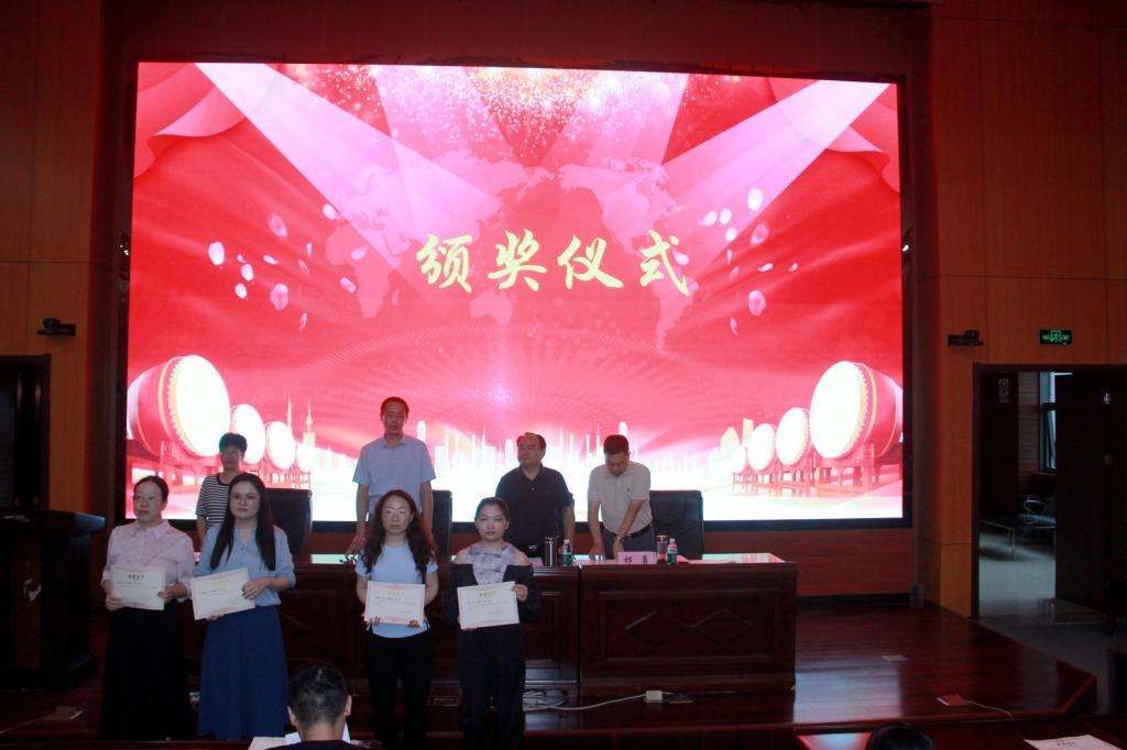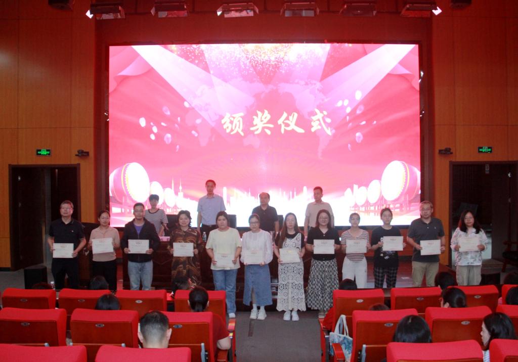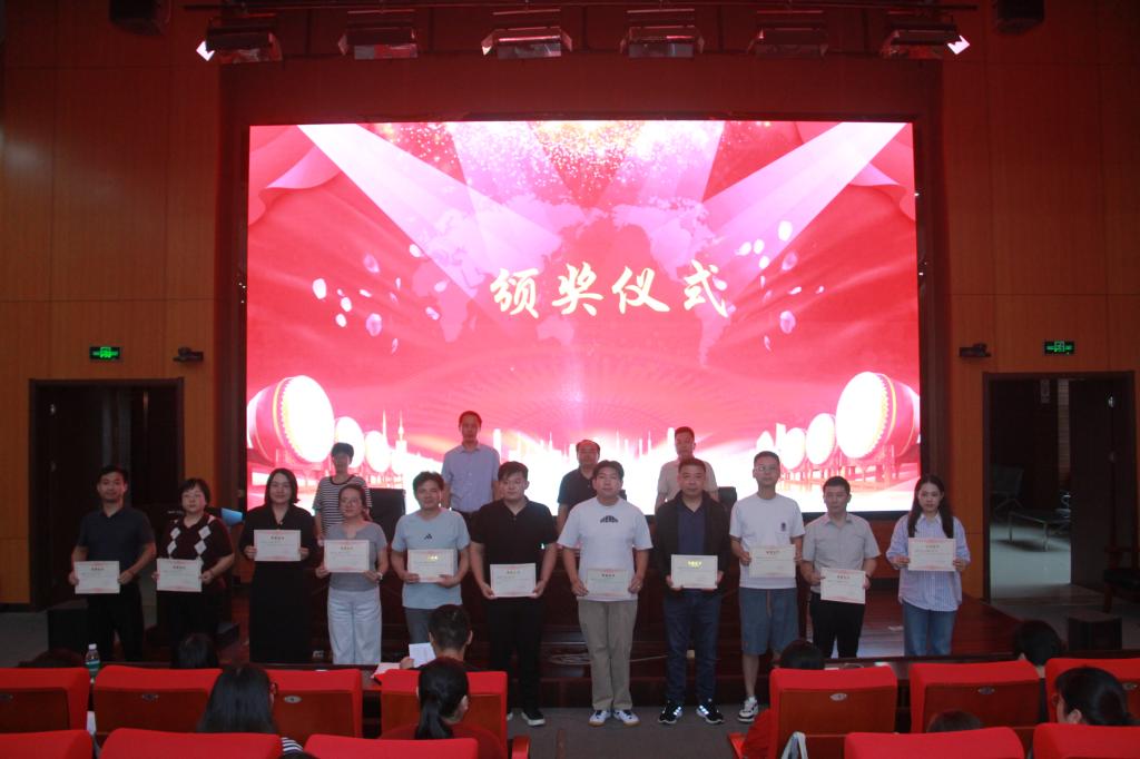 花金明副校长宣读《关于表彰2024年度“青蓝工程”优秀师徒的决定》,优秀师徒登台领奖。