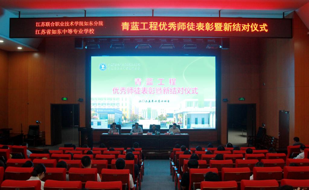 10月14日下午,江苏联院如东分院、如东中专举行2025年“青蓝工程”优秀师徒表彰暨新结对仪式。副校长陈建、花金明,党委委员祁勇,工会主席张霞、督导室主任李一奇,2024年度优秀师徒、2025年新结对师徒及教师代表参加。活动由工会主席张霞主持。