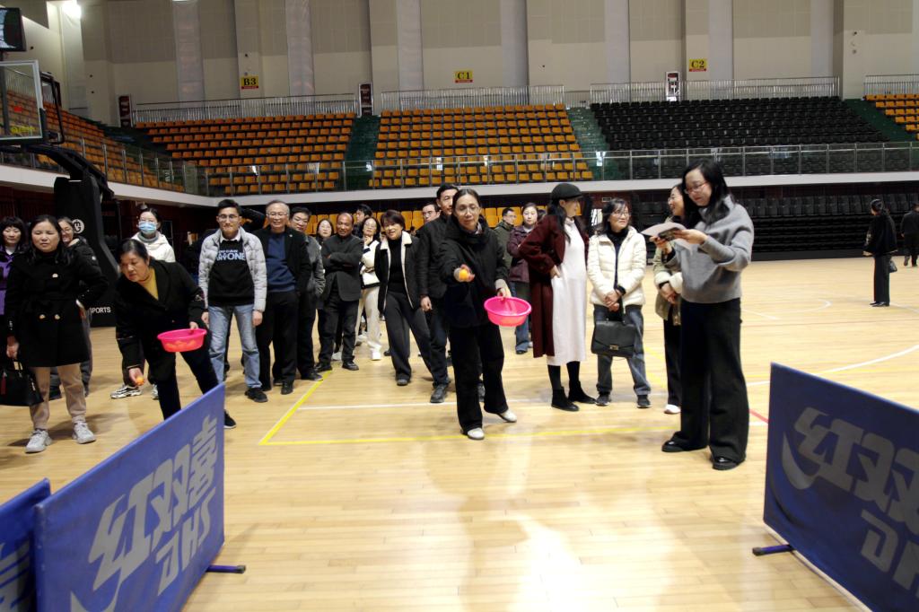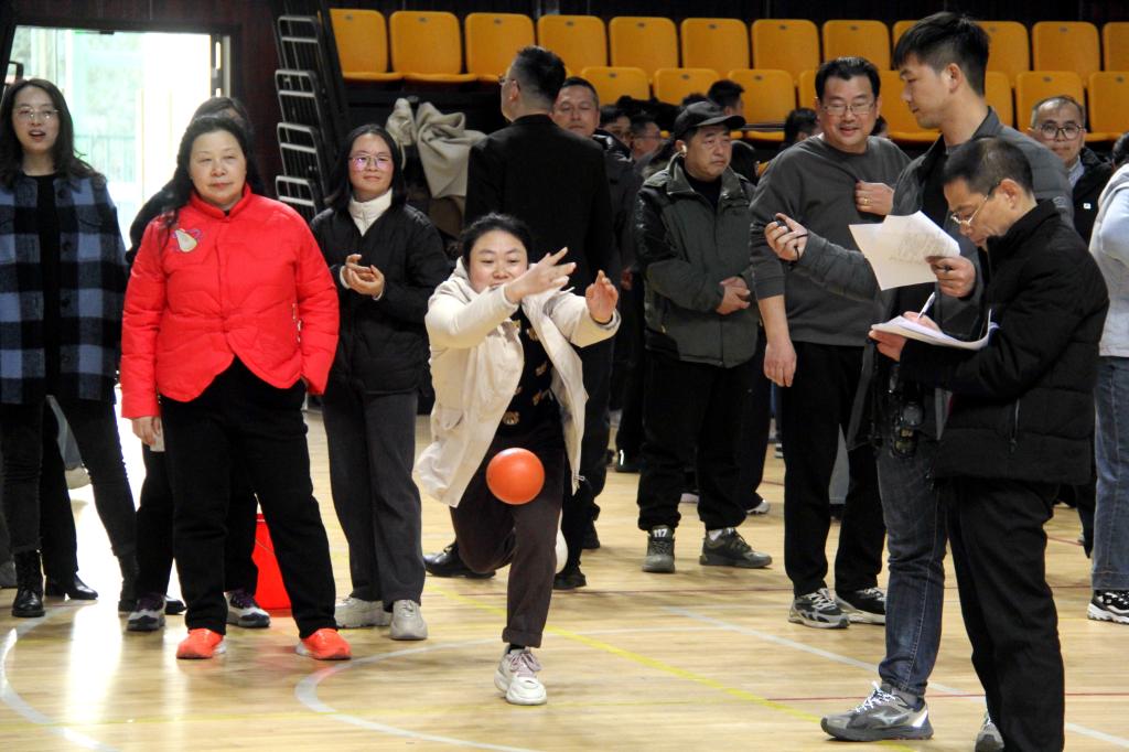 趣味运动会集竞技、娱乐、协作为一体,共设置了拔河和旱地龙舟两个团体项目和九宫格飞盘、趣味保龄球、定点投乒乓球等八个个人项目。