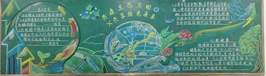 为广泛宣传生态文明思想,倡导简约适度、绿色低碳的生活方式,增强我校青年的生态环保意识,积极推动文明校园建设,努力构建生态与文明同行、人与自然和谐共生的美丽家园。三月如东中专团委组织开展了“共建生态文明,共享绿色未来”黑板报评选活动。