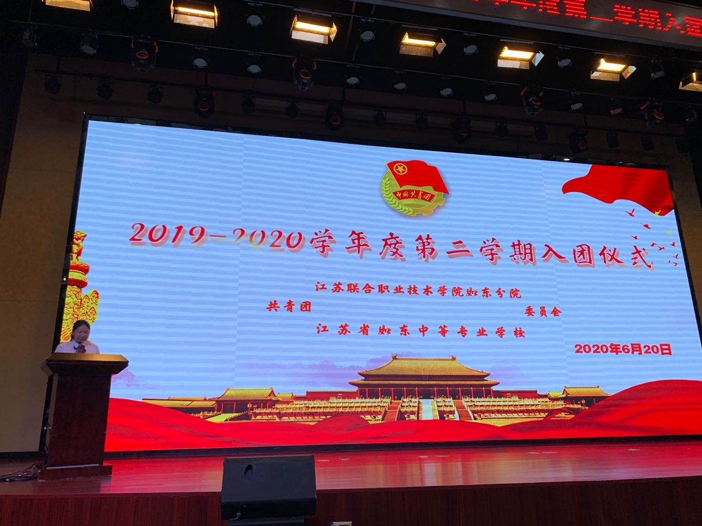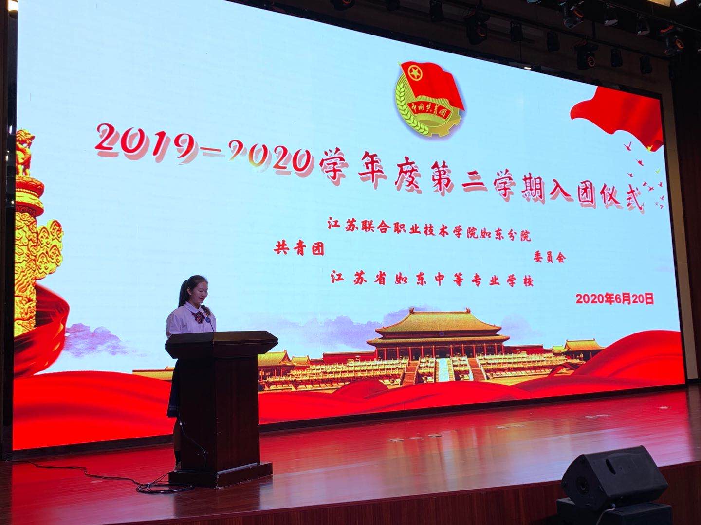 为加强学校共青团队伍建设,增强青少年的进取意识,6月20号下午2点30分,江苏省如东中等专业学校在敬德堂举行了2019-2020学年度第二学期入团仪式暨“爱家乡,爱如东”优秀典型表彰。