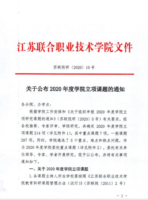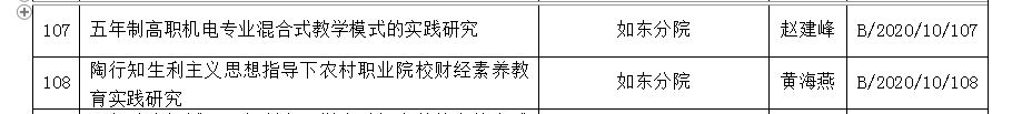 近日,江苏联合职业技术学院公布2020年度学院立项课题,我校赵建峰老师申报的课题《五年制高职机电专业混合式教学模式的实践研究》、黄海燕老师申报的课题《陶行知生利主义思想指导下农村职业院校财经素养教育实践研究》获准立项,近期将约请专家来校指导开题。