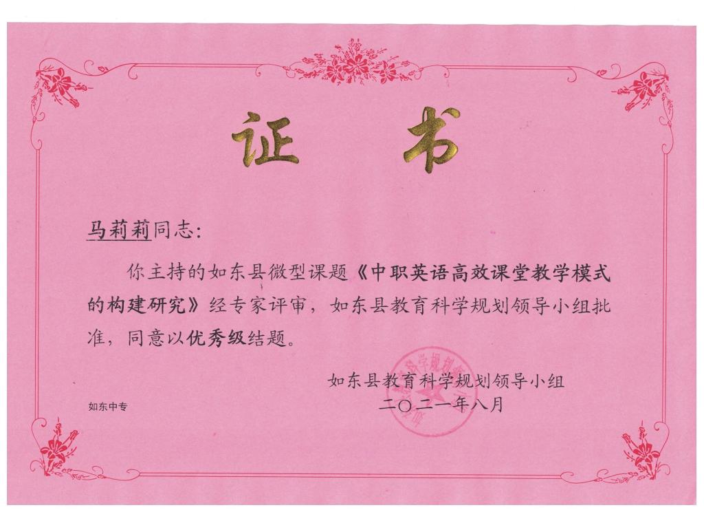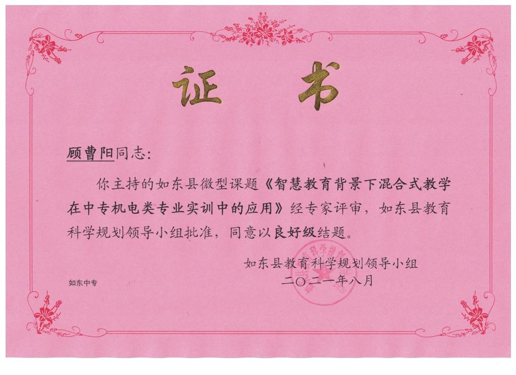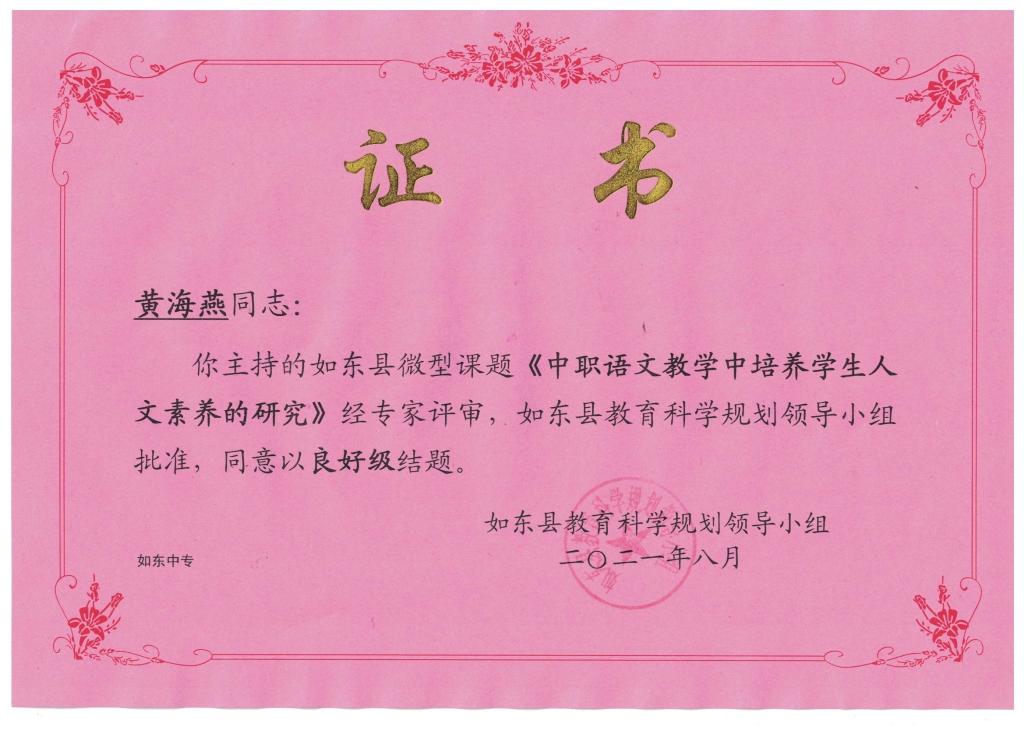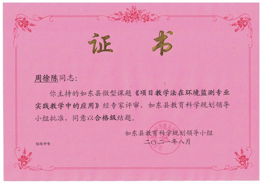 县教师发展中心评审专家对我校部分课题质量给予高度评价,其中,马莉莉老师主持的课题《中职英语高效课堂教学模式的构建研究》以优秀级结题;黄海燕老师主持的《中职语文教学中培养学生人文素养的研究》、顾曹阳老师主持的《智慧教育背景下混合式教学在中专机电类专业实训中的应用》以良好级结题;周徐陈老师主持的《项目教学法在环境监测专业实践教学中的应用》以合格级结题。