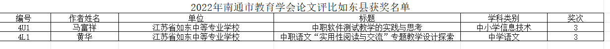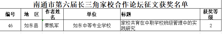 我校在2022年南通市教育学会论文评比中有两位老师获三等奖,在南通市第六届长三角家校合作论坛征文中有一位老师获二等奖。