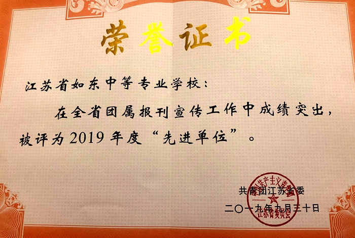 10月8日,全省共青团干部理论专题培训会在南京举行,我校被评为“2019年度全省团属报刊宣传工作先进单位”。