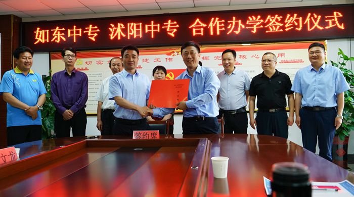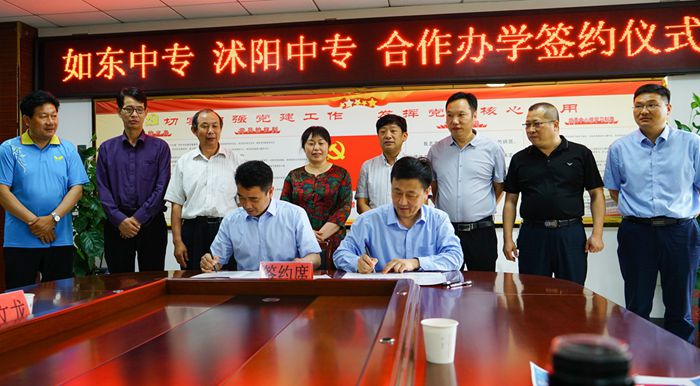 在如东、沭阳双方领导的见证下,如东中专余飞校长、沭阳中专王建校长共同签署了《如东-沭阳职教联合招生合作办学协议书》,标志着如东与沭阳的教育合作又掀开了历史性的一页。