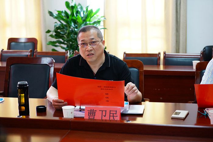 沭阳中专王建校长作了表态发言。他说,近年来,沭阳中专与如东中专紧密交流合作,学习如东中专先进的办学理念,取得了一些成果,为此他对如东中专给予的帮助表示感谢。本次合作,对沭阳中专来说,是一个千载难逢的好机会,他表示,将虚心、诚心,精心地与如东中专合作,全力以赴做好相关工作,为如东企业输送更多的人才,为如东经济发展贡献力量,以实现互惠互利。王建校长表态,将以本次合作契机,加强深度交流,盘活优质资源,推动两地创新,实现职业教育快速发展,共同谱写如东、沭阳教育的新篇章。