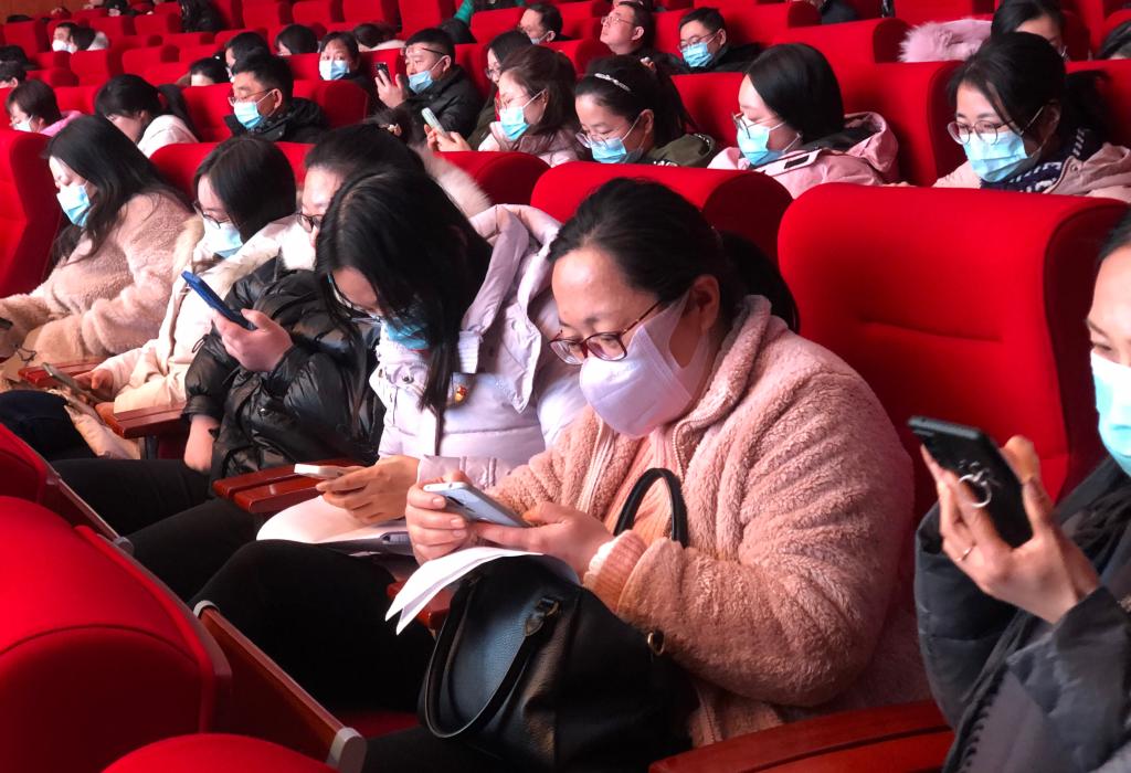 台下党员手机答题比拼