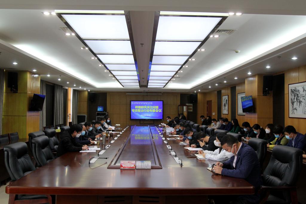 为深化落实《中共如东县委教育工作委员会如东县教育体育局关于开展师德师风突出问题专项整治行动的通知》要求,进一步增强教师的责任感、使命感、荣誉感,切实规范广大教师的从教行为,5月9日下午,学校在求实楼仁和厅召开师德师风建设专题会议,部署新一轮师德师风突出问题专项整治行动,出席会议的有校长室全体领导、各职能部门和系部的主任、各党支部的书记。校党委委员、党政办公室主任肖海兵主持会议。